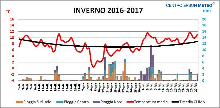 Tab.1 – Anomalie di temperatura media e precipitazioni – INVERNO 2016-2017