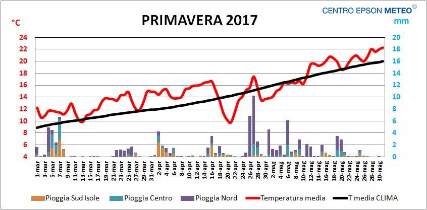 Tab.2 – Anomalie di temperatura media e precipitazioni – PRIMAVERA 2017